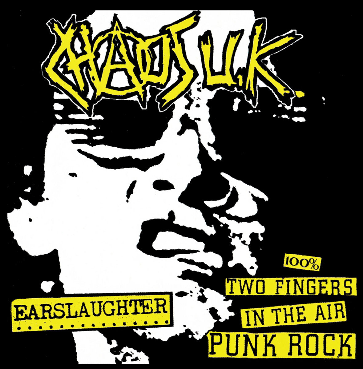 CHAOS U.K. – Earslaughter / 100% Two Fingers In The Air Punk Rock LP (black/white splatter vinyl)