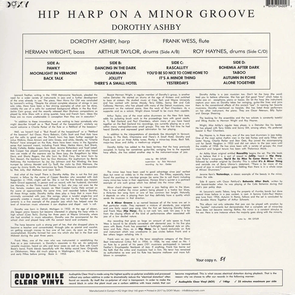 DOROTHY ASHBY – Hip Harp On A Minor Groove 2xLP (clear vinyl)